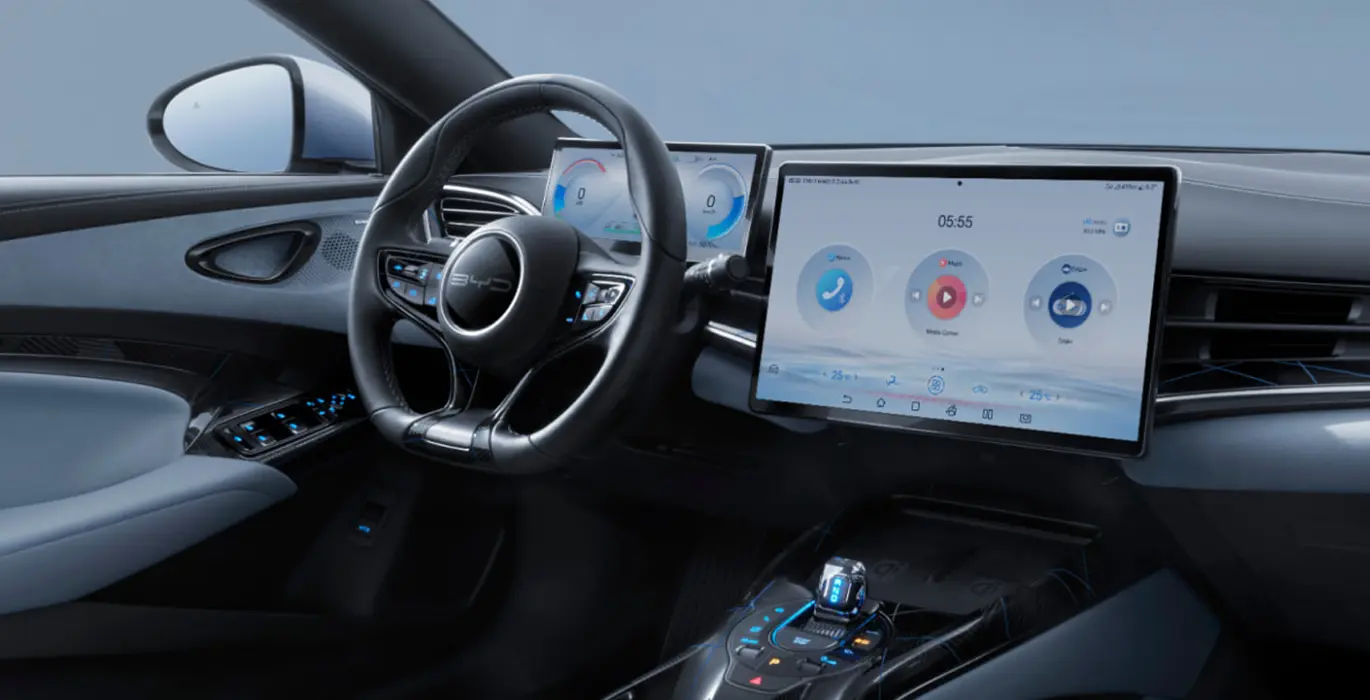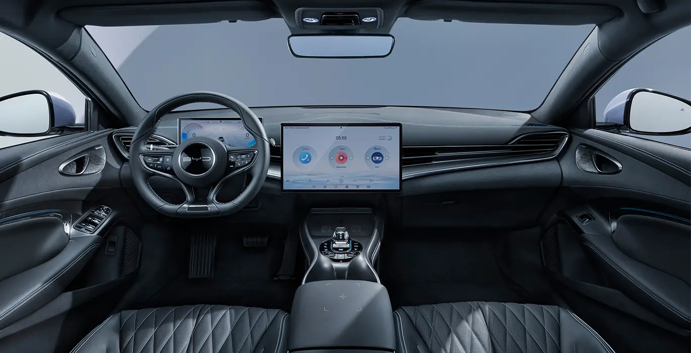 - Conectividad 4G, asistente de voz "Hi, BYD", y carga inalámbrica para smartphones.